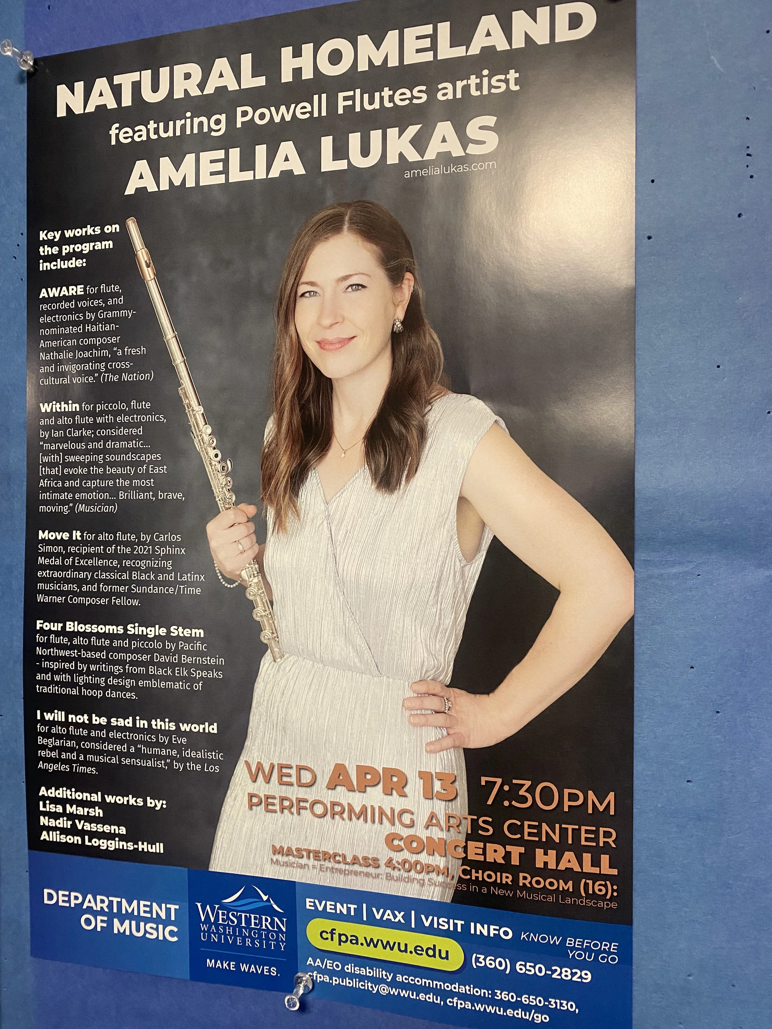“We’re thrilled to have [had] this residency with Amelia, a supremely compelling musician, artist and performer. Our students greatly enjoyed playing for and learning from Amelia in her masterclass, and our concert audience was very moved by her performance. And partnering with the Pacific Gateway Center and the Hawaiʻi Flute Society allowed for a rich exchange and conversation with several important communities.”